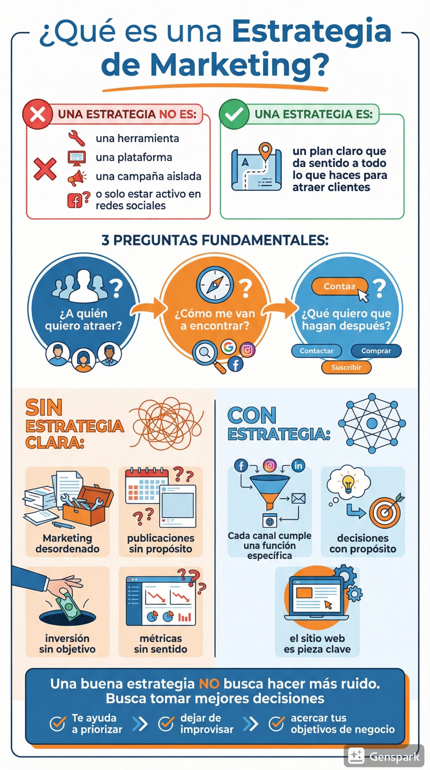 En cambio, cuando entiendes el recorrido del cliente, tu marketing se vuelve más claro y más efectivo. Sabes qué tipo de mensaje usar en cada etapa y qué esperar de cada canal.