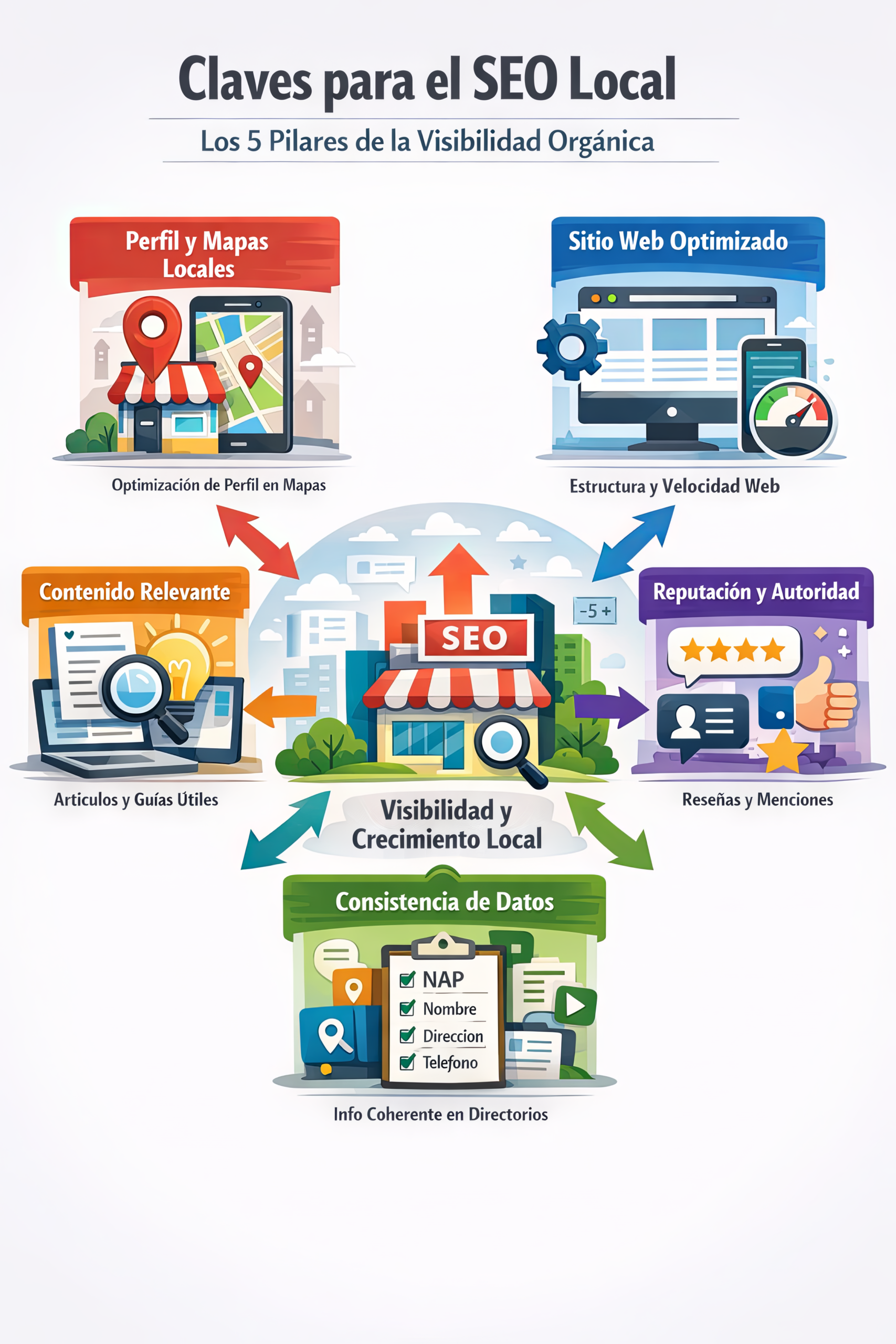 La visibilidad orgánica no ocurre por casualidad. Es el resultado de múltiples señales digitales trabajando de forma coherente. Cuando estos elementos están alineados, su negocio no solo aparece, sino que comienza a consolidarse como una opción relevante dentro de su mercado local.