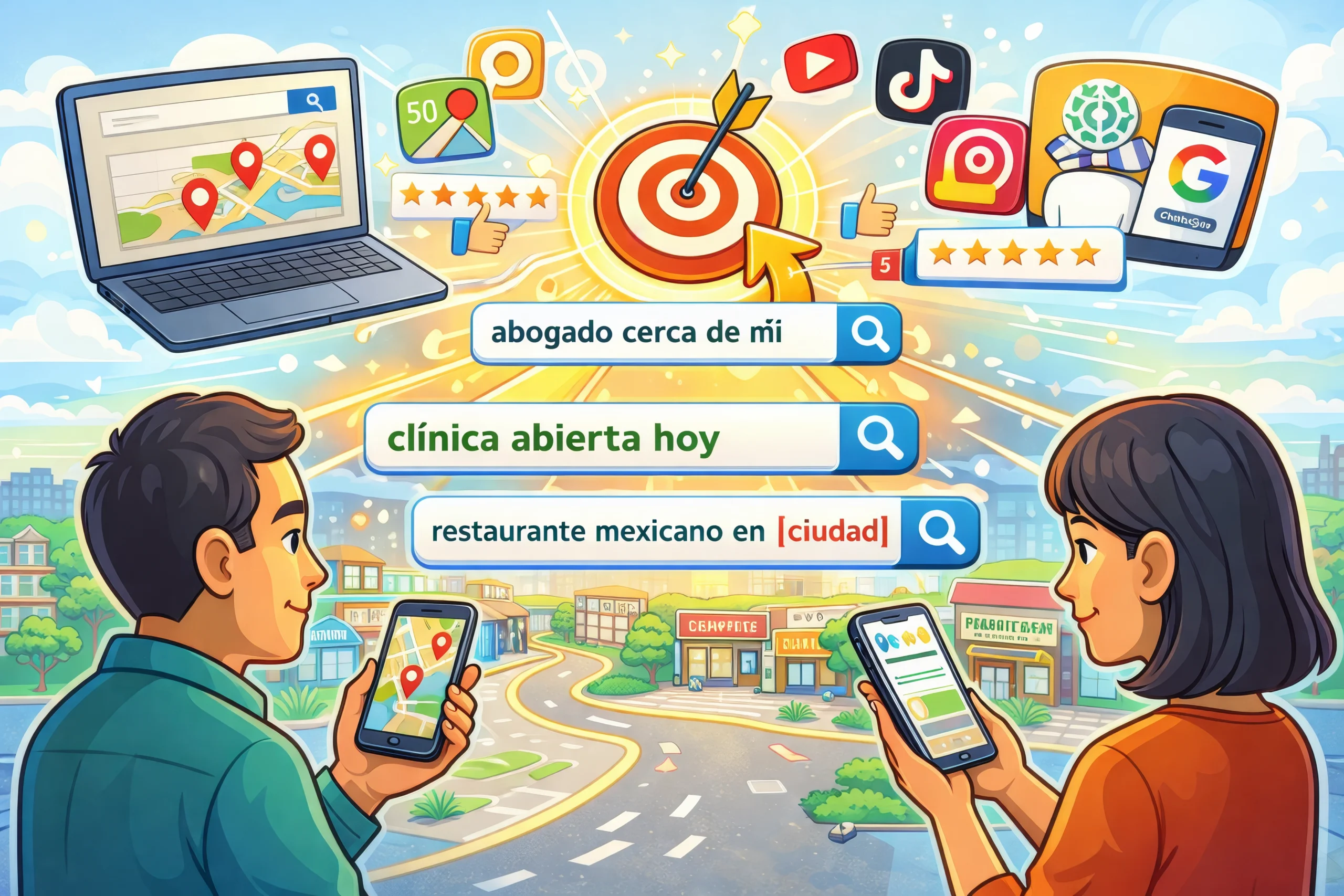 Cuando alguien busca “abogado cerca de mí”, “clínica abierta hoy” o “restaurante mexicano en [ciudad]”, no está navegando por entretenimiento. Está buscando una solución inmediata. Ese momento tiene un valor enorme. Si su negocio no aparece ahí, para ese cliente simplemente no existe.