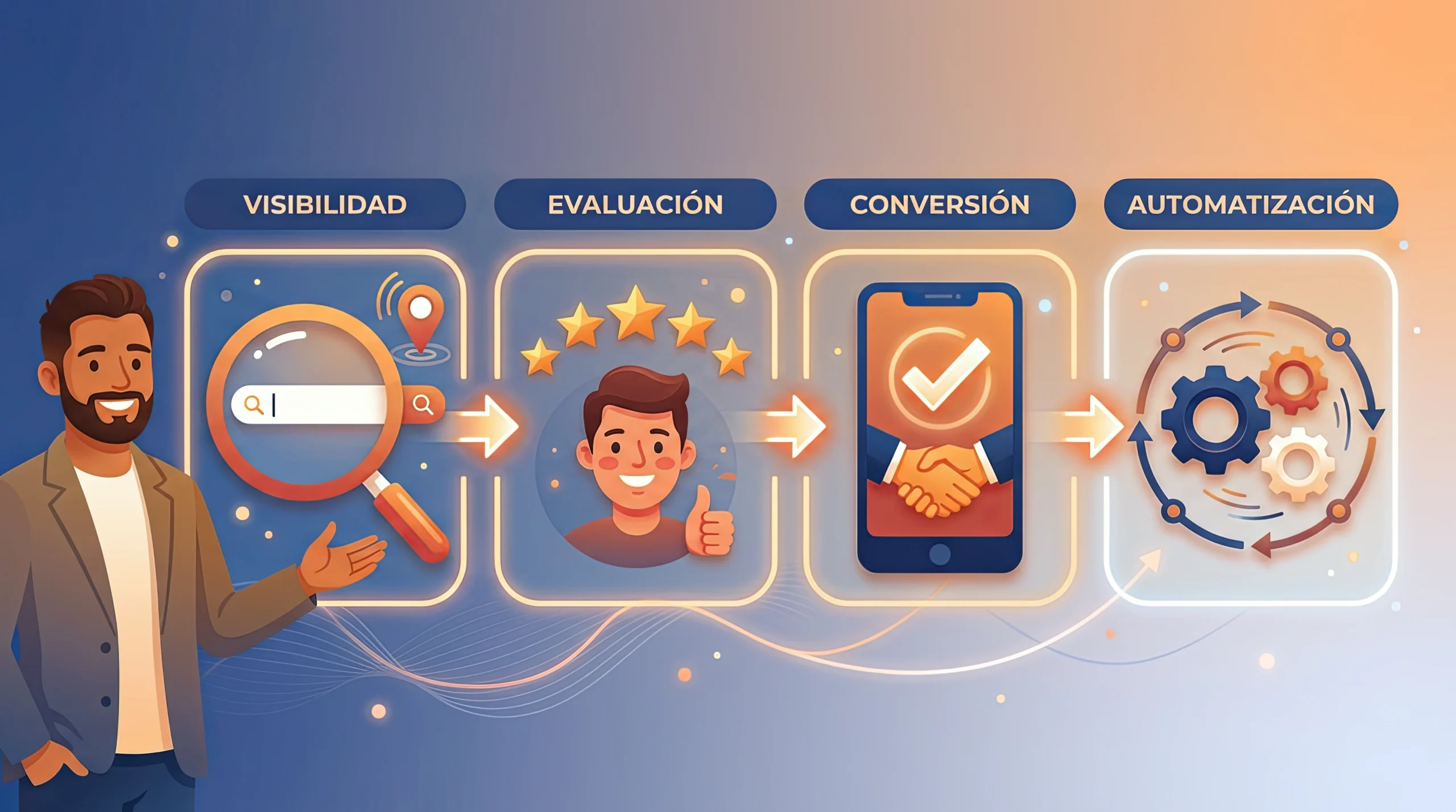 Después viene la conversión: la facilidad para contactarlo, la claridad de su oferta y la estructura de seguimiento determinan si esa intención se transforma en una oportunidad real.